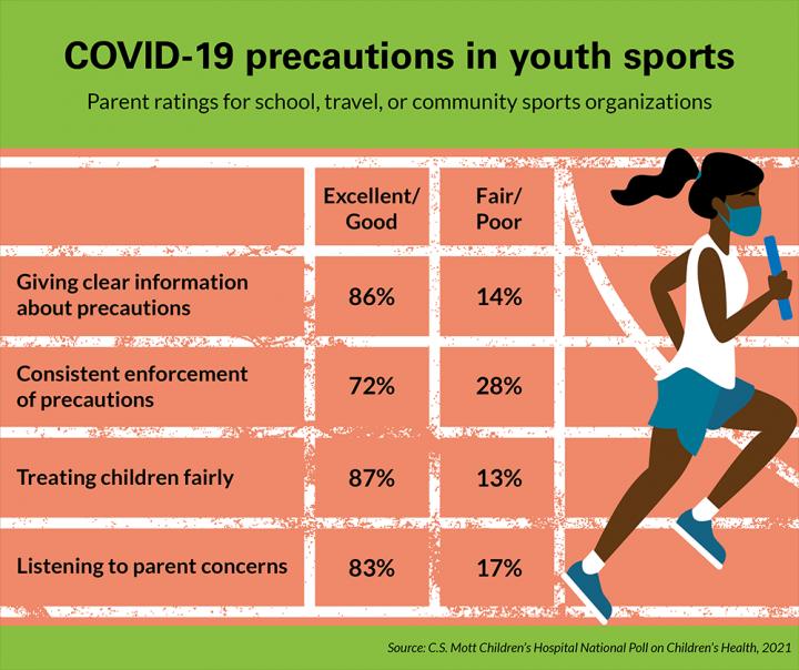 And while the majority of parents give their child's sports organization high marks for communication about safety protocols, one in four rate their sports league as fair or poor for consistent enforcement of COVID-19 precautions.