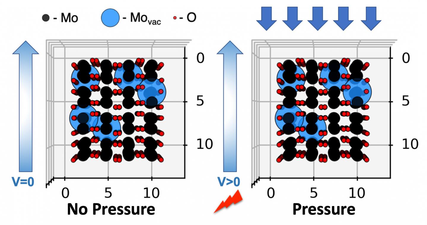 The key appears to be defects that make molybdenum dioxide's crystal lattice imperfect. When strained, the dipoles of electrons trapped in these defects seem to align, as with other piezoelectric materials, creating an electric field leading to the observed effect.