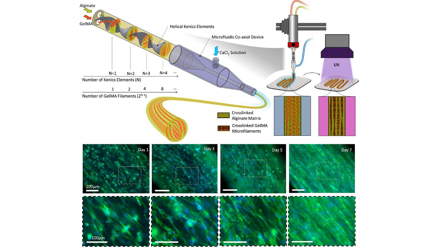 "It makes the process challenging and limits its biocompatibility and the number of materials that can be used, but with this strategy larger filaments can still direct cellular organization," said Tamayol.