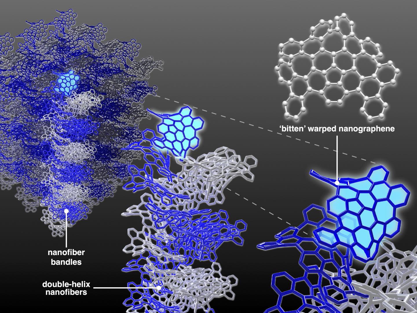 They found that the bWNG gel consisted of double-stranded, double-helix nanofibers that assembled themselves from curved, stackable nanographenes.