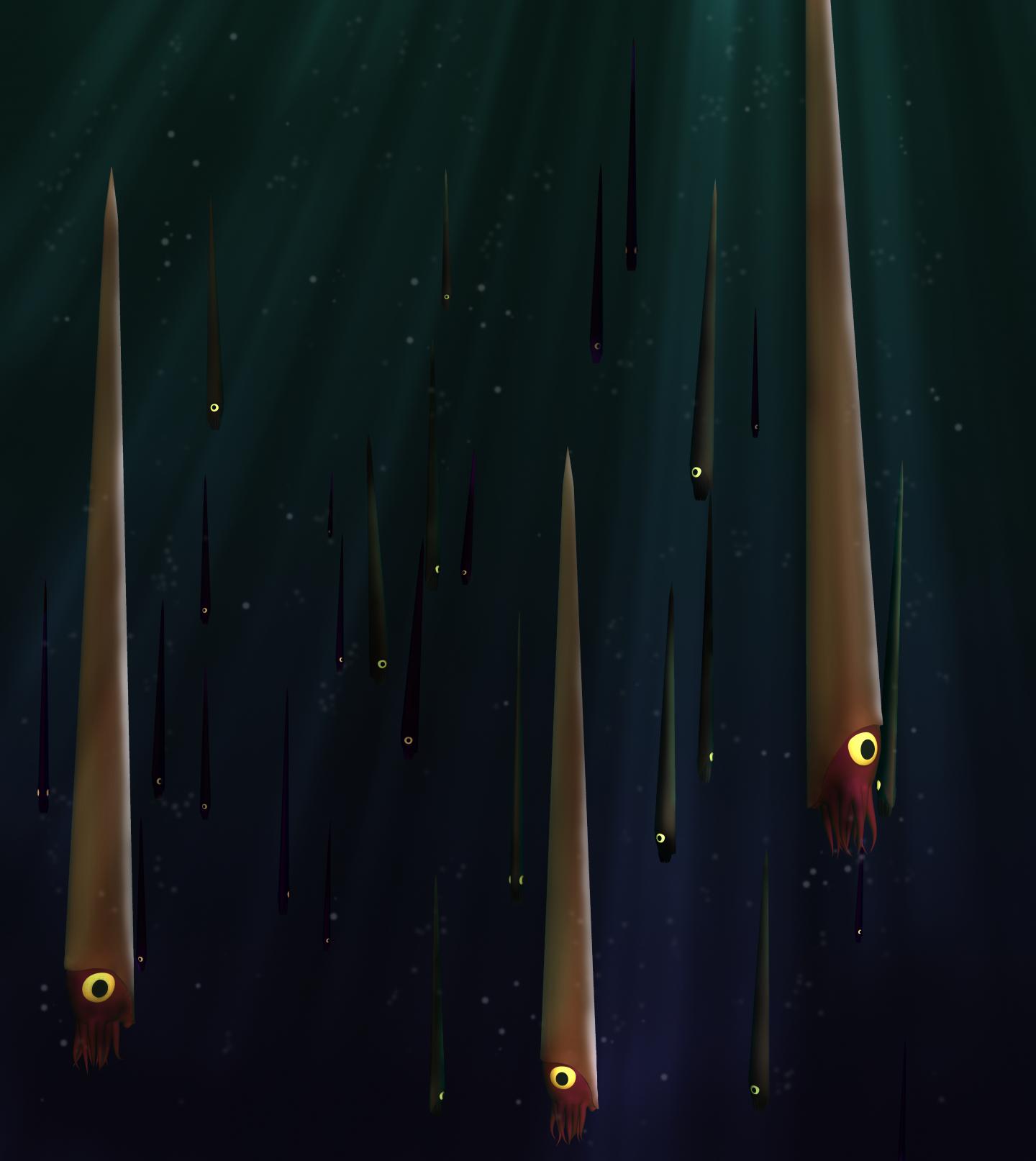 So most species of orthocones couldn't have lived a horizonal-swimming lifestyle. "Instead," Peterman says, "species without counterweights in their shells assumed a vertical life habit, either feeding near the seafloor or vertically migrating in the water column. While orthocones were not as athletic or active as modern squid, they could have maintained the ability to thwart predators with upward dodges."