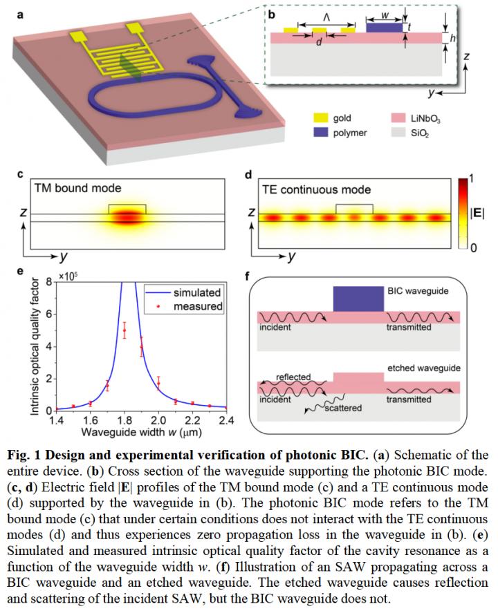 In a new paper published in Light: Science & Applications, researchers from The Chinese University of Hong Kong demonstrated a high-quality photonic microcavity based on the BIC mechanism, which was integrated with an SAW interdigital transducer monolithically on a thin-film LiNbO3-on-insulator platform. The cavity was constructed simply by patterning low-refractive-index waveguides on the high-refractive-index LiNbO3 substrate without facing the challenge of high-quality etching of LiNbO3.