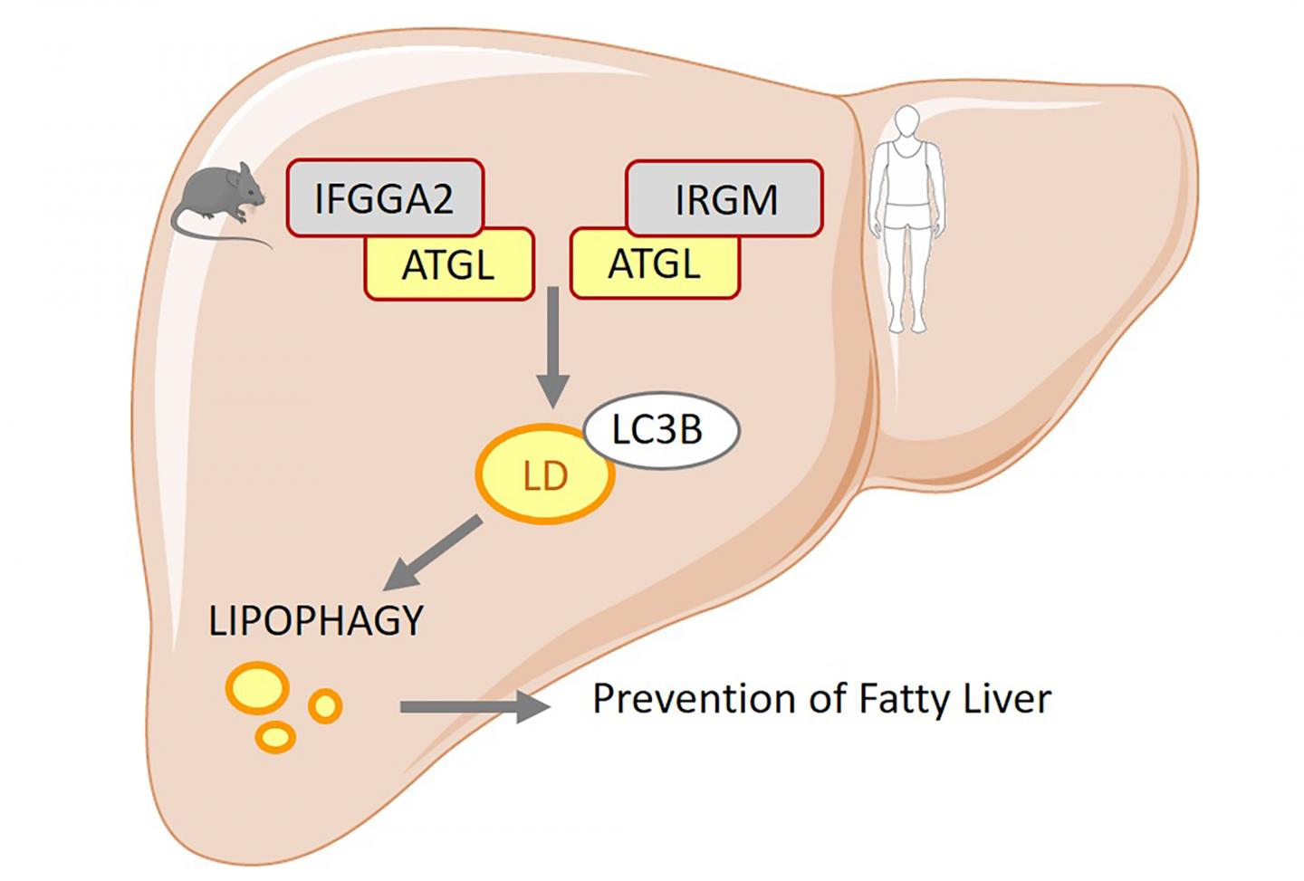Functional studies have shown that an overproduction of immunity-related GTPases in liver cells or in the liver of mice, significantly reduced their fat content. "The reason for this is the induction of a particular form of autophagy that is specific for the degradation of fats and is therefore called lipophagy," explained Dr. Wenke Jonas, who co-directed the study together with Professor Schürmann. Autophagy is a type of cellular disposal and recycling process through which the cell's own components are degraded. The researchers have observed that after the uptake of fatty acids in liver cells, the immunity-related GTPases migrate to the lipid droplets. There they bind to an enzyme involved in fat degradation (adipocyte triglyceride lipase, ATGL) and ensure that a central protein of autophagy (LC3B) binds to the fat droplet. Due to the autophagy of lipid droplets, the amount of fat is reduced and thus the development of fatty liver is prevented.