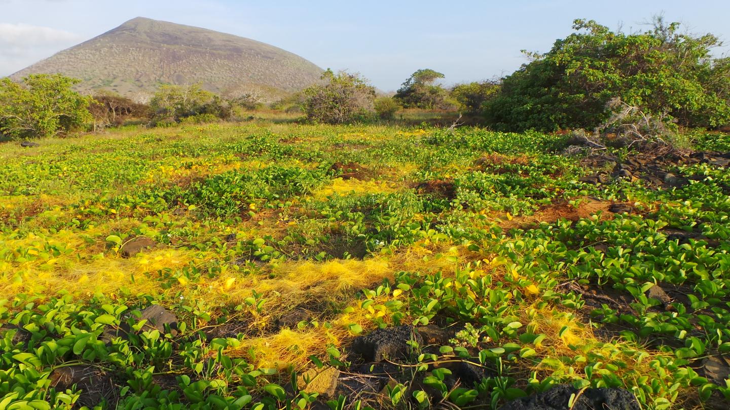 image: Dodder can parasitize a variety of plant species, including some of agricultural importance, like tomatoes. In addition to reducing yield, its dense vine-like structure can interfere with harvesting machinery.