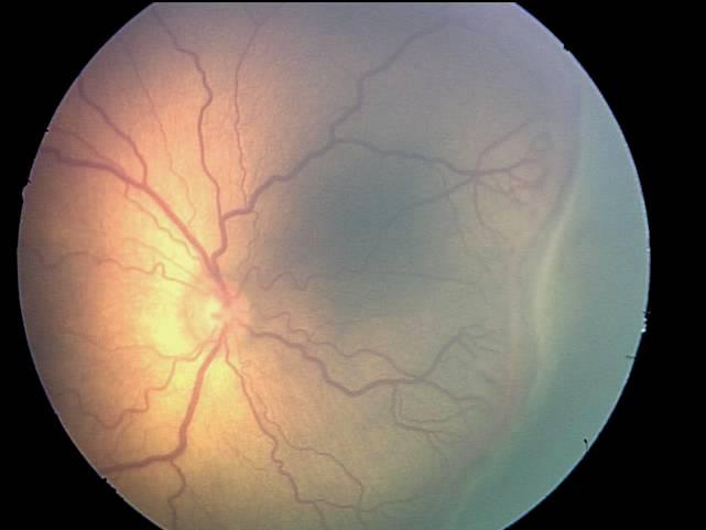 image: This image of an eye shows how twisted and dilated vessels of the retina can indicate retinopathy of prematurity, or ROP, the leading cause of childhood blindness.