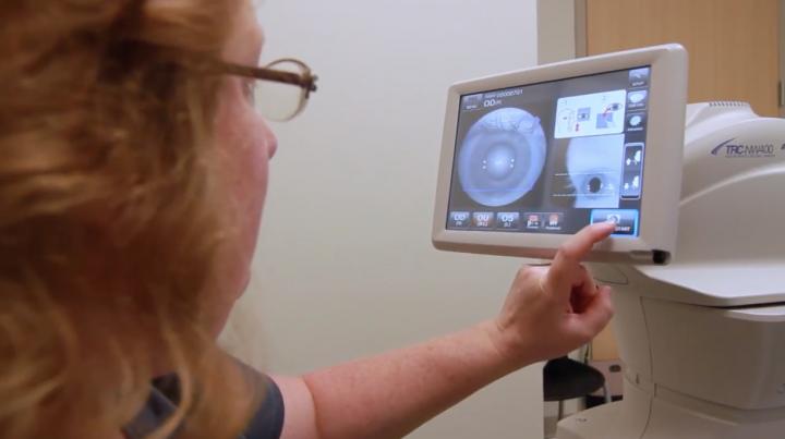 image: Clinic staff member at the Diabetes and Endocrinology Center at University of Iowa Health Care-Iowa River Landing in Coralville, Iowa, using IDx-DR - the first medical device that uses AI for the autonomous detection of diabetic retinopathy.