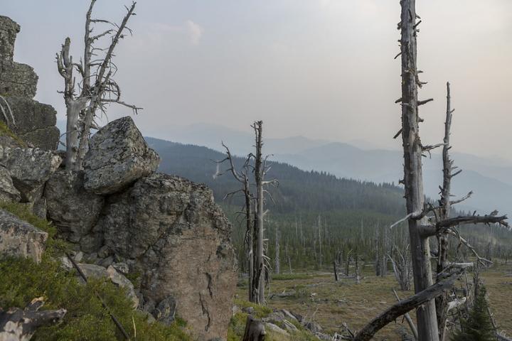 image: Smoky skies during the Cougar Creek Fire in Washington's Okanogan-Wenatchee National Forest in August 2018.