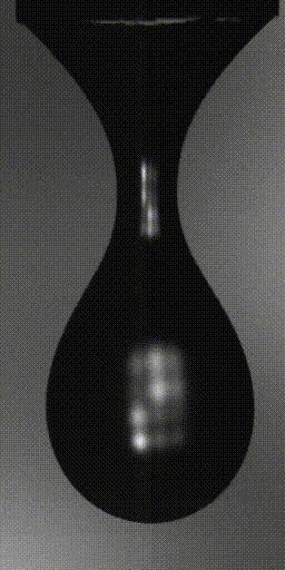 Basaran and his students have figured out a way to calculate surface viscosity just by looking at how a droplet stretches. A picture taken of the stretched droplet as it starts to break gives the values to put into a simple math formula that provides the surface viscosity measurement.