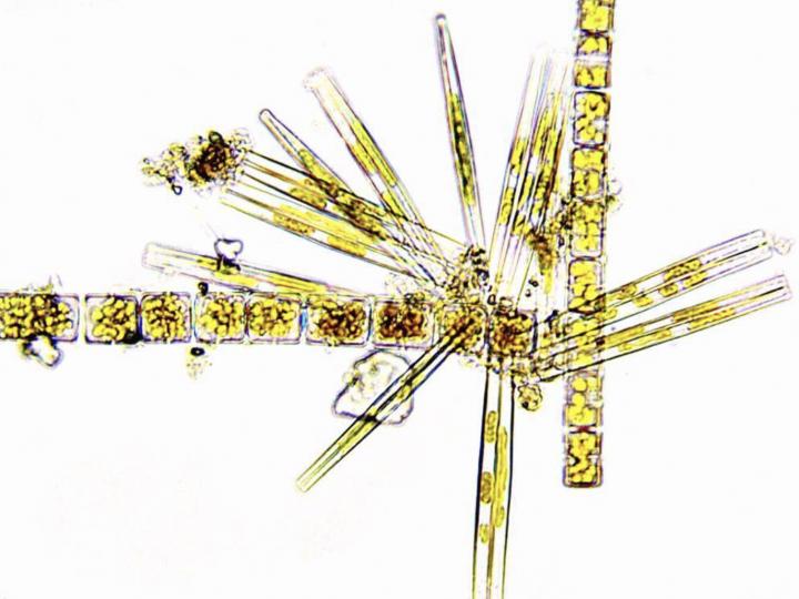 image: The diatoms in this image are members of the CRASH lineage that have stolen many genes from bacteria. CRASH species have become dominant phytoplankton in both marine and freshwater environments.