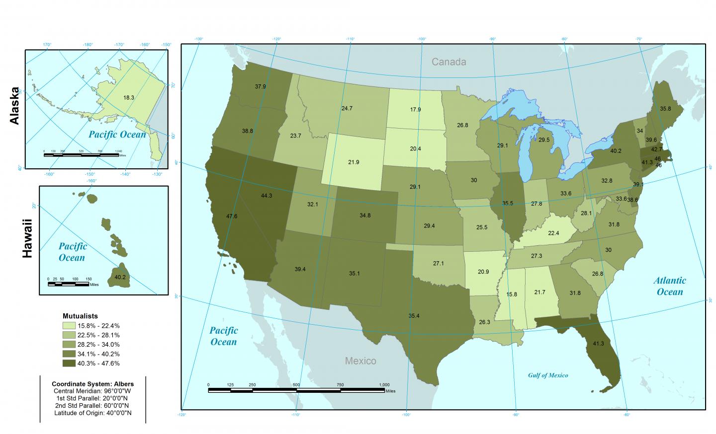 image: From 2004 to 2018, researchers found that Western states had a 4.7 percent increase in mutualists.
