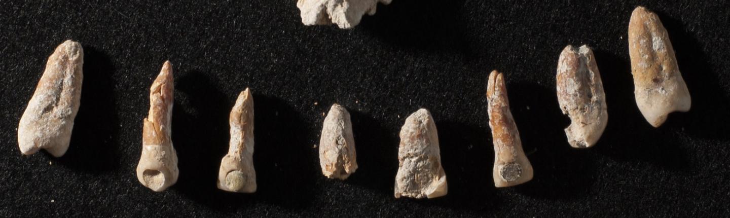 image: Teeth with dental inlays from a nonroyal elite Mayan tomb.