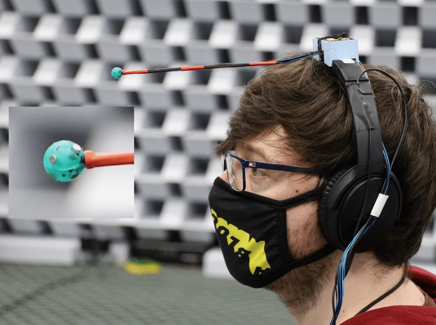 Small devices have been used before to listen to bats but previous versions haven't allowed listeners to locate the bats, just hear them. With their device the researchers record ultrasound using an array of microphones flush mounted and uniformly distributed on the surface of a small sphere. After the signal has been pitch-shifted to audible frequencies, the sound is played back on the headphones immediately. Currently, the pitch-shifting is performed on a computer, but, in the future, it could be done with electronics attached to the headphones.