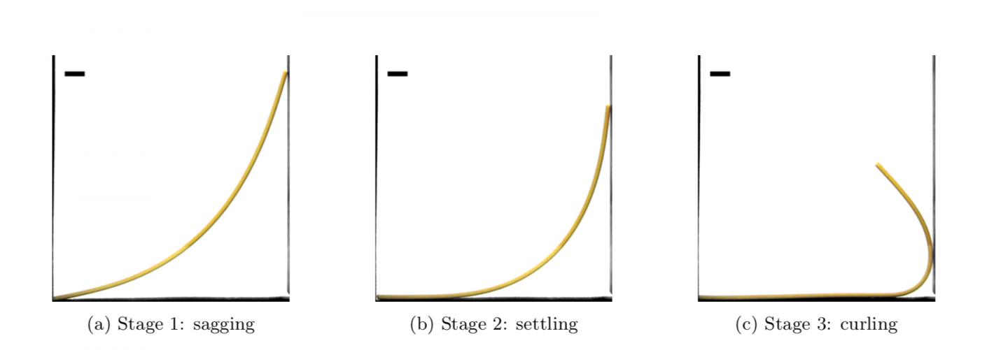 January 2, 2020 - Boiling water turns spaghetti from brittle, inedible rods to soft, delectable pasta. A new study models the mechanics behind how noodles deform when they cook. Researchers from the University of California, Berkeley, identified three states during a spaghetti strand's evolution: sagging, settling, and curling. When placed in a pot of boiling water, a spaghetti strand will first sag and then settle on the pot's bottom before finally curving in on itself. By incorporating these properties into their model, Goldberg and O'Reilly were able to accurately replicate the behavior of a noodle. They then tested this model against a single spaghetti strand soaked for two hours in a pot of room-temperature water. The results validated the model's ability to predict the mechanical behavior of the pasta's core -- potentially valuable knowledge for the food production industry and food science community. Future research could examine the deformation of rigatoni or lasagna, the authors suggest.