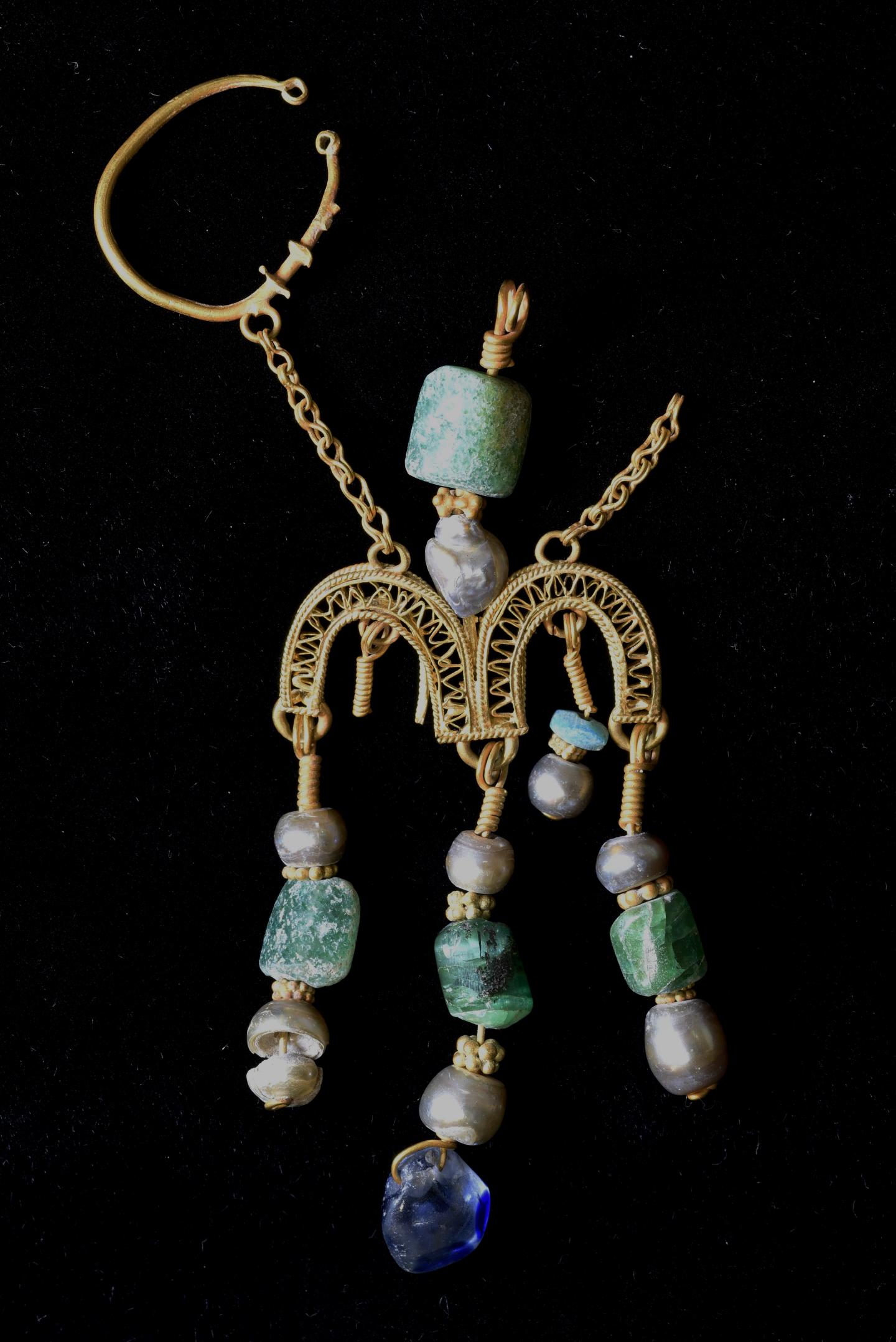 "It's large and valuable, not something you would lose, you see, " Gibson said. "This piece of jewelry may have been of Egyptian origin and it seems to have been used as an attachment for the ear, and because of its large size, perhaps also to hold a veil in position around a women's head." The Fatamid dynasty came from Egypt, and the gold work is a familiar Egyptian style of the period, with the use of gold and pearls in jewelry mentioned in documents from the Cairo Genizah.