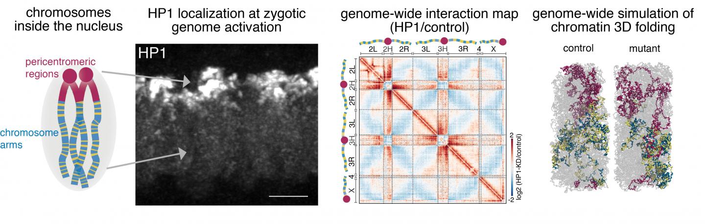 When the genome of the zygote is activated for the first time after fertilization, it triggers global de novo 3D chromatin reorganization including a clustering of highly compacted regions around the centromere (pericentromeric), the folding of chromosome arms and the segregation of chromosomes into active and inactive compartments. "We identified HP1a as an important epigenetic regulator necessary to maintain individual chromosome integrity but also central for establishing the global structure of the genome in the early embryo," says Nicola Iovino.