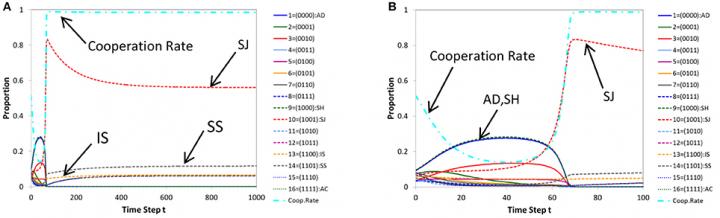 A research team ECOSOS (Evolving Cooperation and Social Simulation) led by Hitoshi Yamamoto from Rissho University develops a game theoretical method to analyze what role the diversity of social norms plays in the process of evolving cooperation. The team revealed that a social norm that regards those who help the bad as bad becomes extinct if the members of the society learn their norms based on "dividualism". The study was carried out by collaborating with colleagues Satoshi Uchida (RINRI Institute), Isamu Okada (Soka University), and Tatsuya Sasaki (University of Vienna) and is published in Frontiers in Physics.