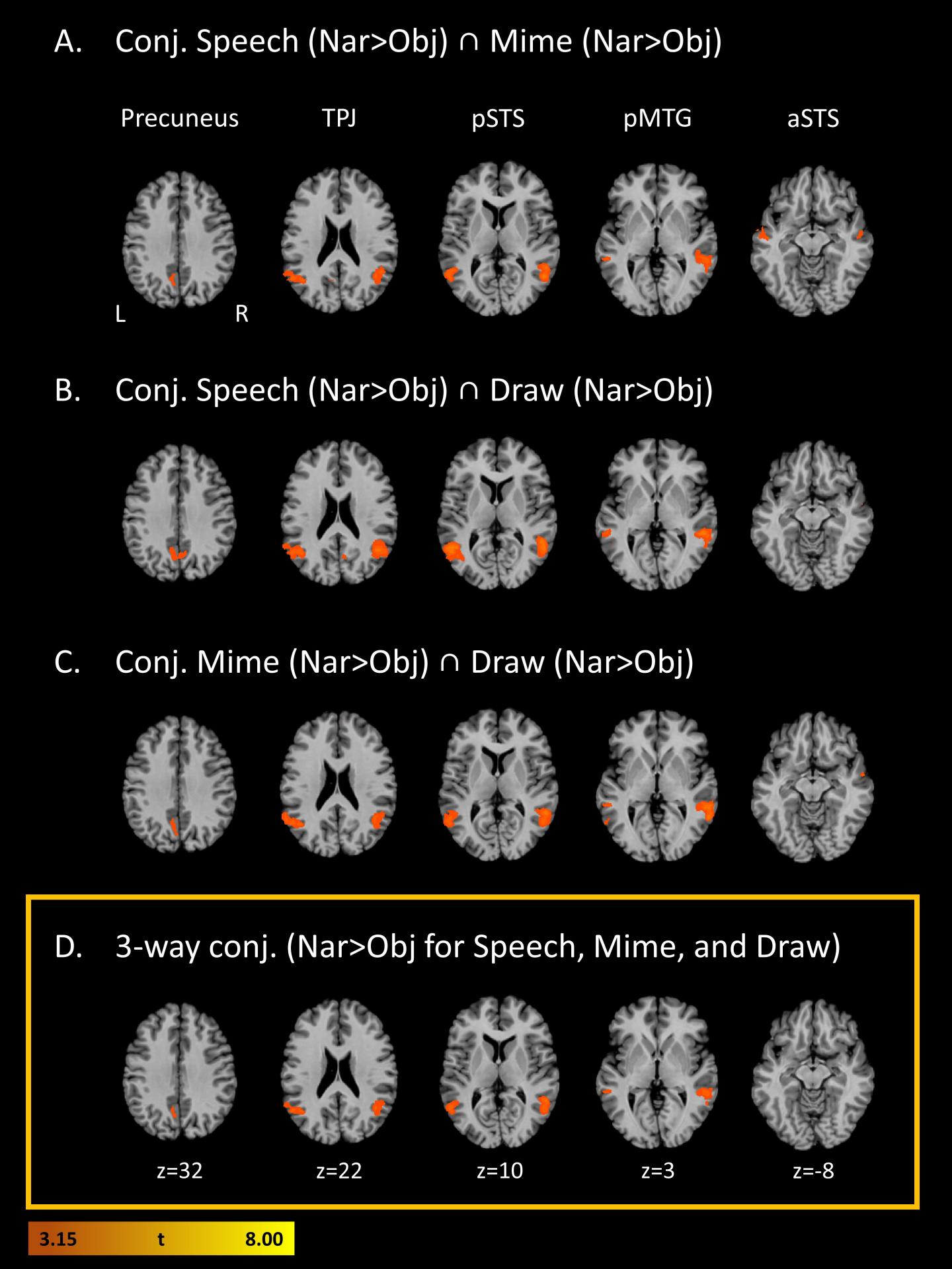 An important question researchers set out to answer was how, exactly, narrative ideas are communicated using three different forms of expression, and to identify a so-called narrative hub within the brain.