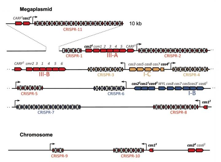 "The observation that we can select "escaper" phages that deleted regions recognized by defensive CRISPR RNAs means that we can easily engineer mutant phages by targeting them with engineered CRISPR RNAs recognizing genomic regions of interest," says Severinov, "given how little we know about viruses infecting thermophilic bacteria, our finding opens a way to probe these viruses by designer CRISPR RNAs and determine the functions on individual viral genes."