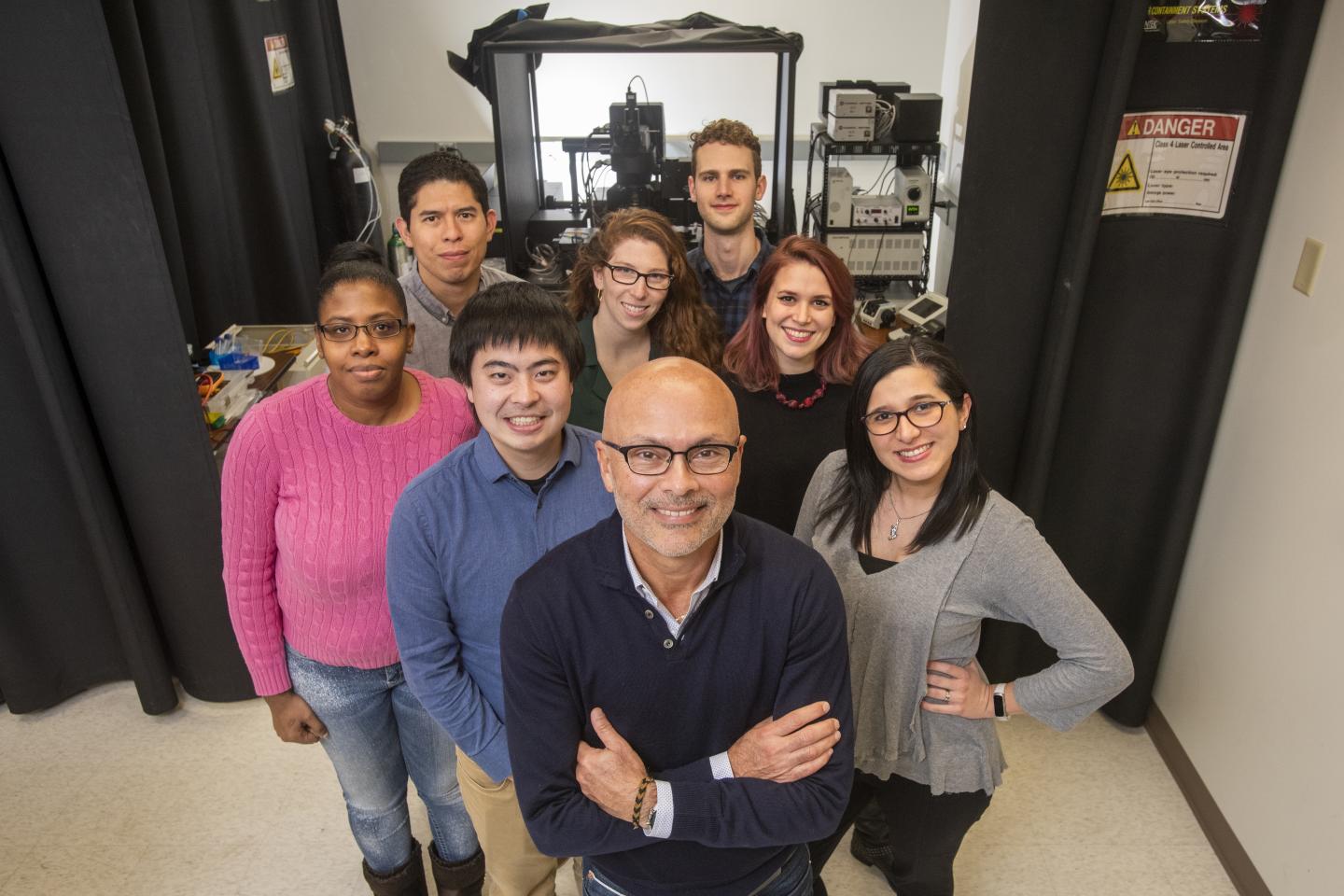 image: Luis Fernando Santana (front) with his research team. (Photo taken February 2020.)