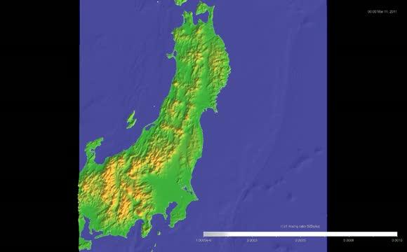 video: The white shaded area shows the hourly atmospheric concentration of 131I in the simulations using the estimated emission condition from 11 to 31 in March 2011.