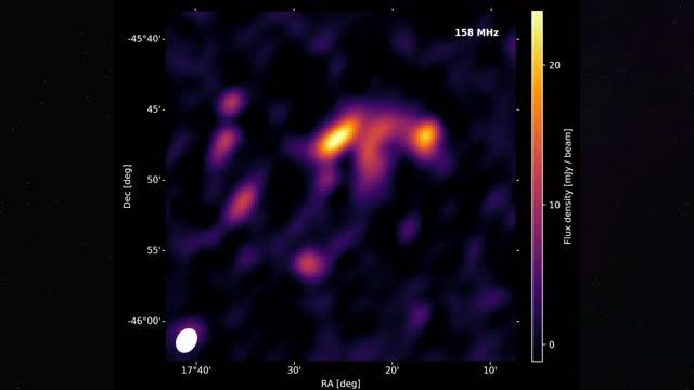 Lead author and PhD candidate Torrance Hodgson, from the Curtin University node of the International Centre for Radio Astronomy Research (ICRAR) in Perth, said the team observed the cluster for 12 hours at five radio frequencies between 87.5 and 215.5 megahertz.