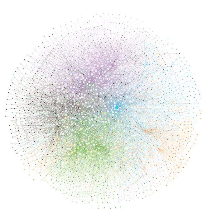 image: This graph represents the biosphere, ecosystems and individual organisms' biochemistry as connecting molecules participating in shared reactions. It reveals that various scaling laws are common across different levels of biological organization.