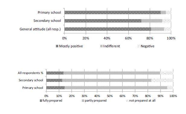 The results showed that teachers are only partially ready to work under a new system - 13% answered that they are completely confident to do so, while 80% approve of the new standards in general. 34% reported not receiving any support from school superiors or public administrators. 64% confessed that they lack motivation to adapt to the new regulations.