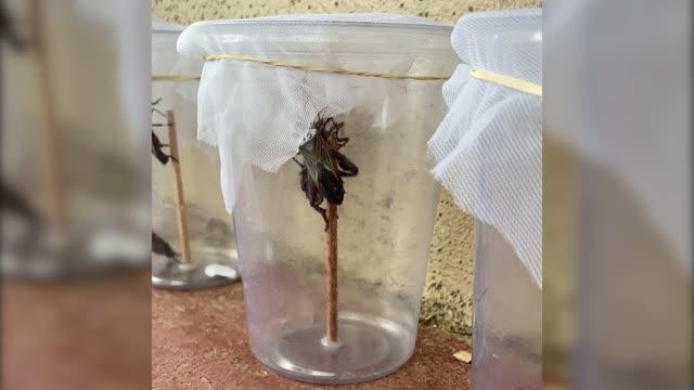 video: Two male giant mesquite bugs fight each other in a laboratory experiment. Slow-motion part shows how one of the bugs slams its leg spike into the wings of its opponent. For this study, the researchers were able to measure and quantify the damage inflicted during such fights, revealing clues about the evolution of weapons in the animal kingdom.