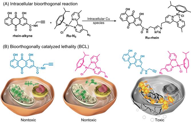 image: Design of the "Bioorthogonally Catalyzed Lethality" strategy