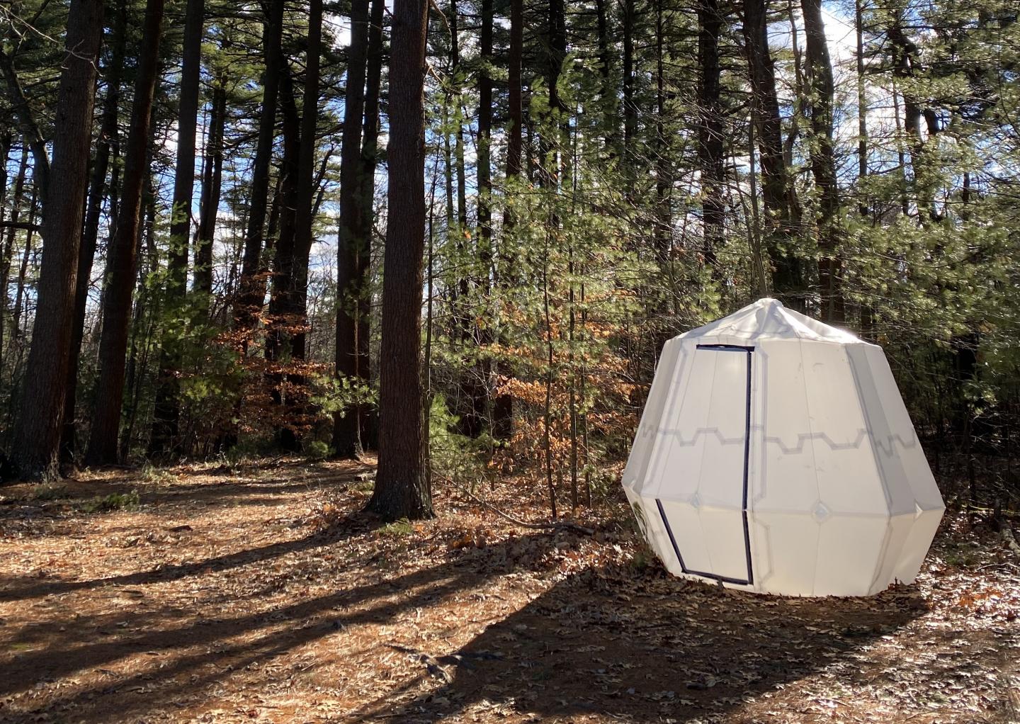 Taking their design process to the real world, the researchers designed and built an 8 foot by4 foot inflatable shelter out of thick plastic sheets.