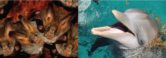 image: Many species of bat and toothed whales (including dolphins) evolved echolocation independently.