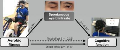 image: We revealed that spontaneous eye blink rate significantly mediated the association between higher aerobic fitness and greater cognitive function. β indicates standardized regression coefficient, which represents the degree of association between variables.
