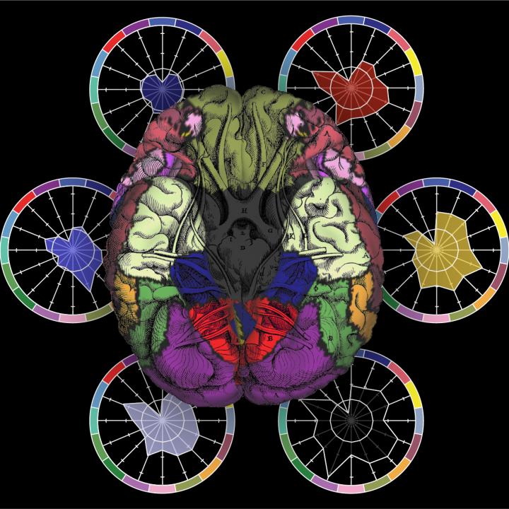 image: Imaging studies could help researchers understand how connections break down in different psychiatric conditions, shown here as pinwheels representing the different patient groups examined in the present study (Baker et al. 2019).