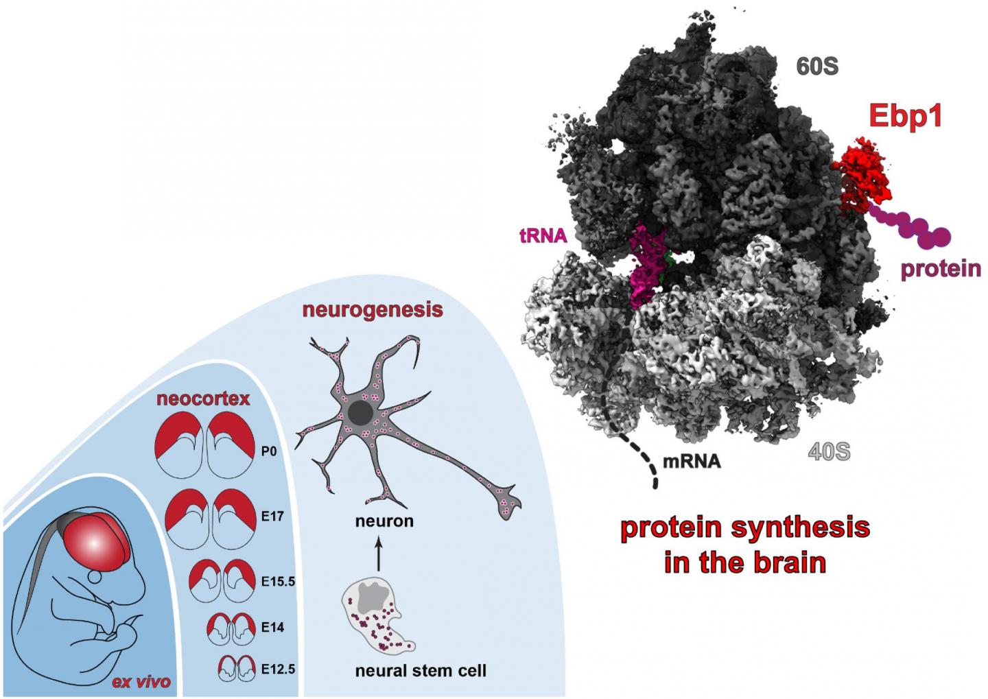 Protein synthesis is a finely tuned process in the cell by macromolecules known as ribosomes. Which regulators are responsible for controlling protein synthesis in the brain, and how do they exert their control on the ribosome? To address this question, a team of researchers from Charité - Universitätsmedizin Berlin studied the structure of the brain's ribosomal complexes in great detail. The team was able to identify a new factor which is also involved in controlling brain development. Details of this research have been published in Molecular Cell*.