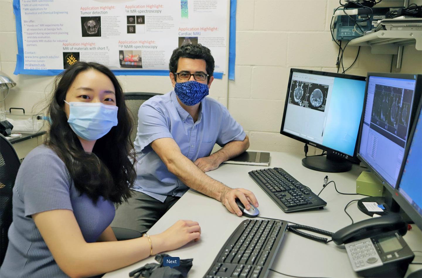 image: Georgia Tech Mechanical Engineering Ph.D. student Yutong Guo (left) and her mentor, assistant professor Costas Arvanitis, have developed a way to use ultrasonics to treat brain disease.