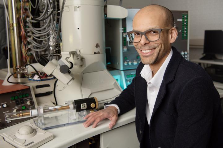 image: Materials science and engineering professor Shen Dillion uses electron microscopy and targeted laser heating for ultra-high temperature testing of aeronautical materials.