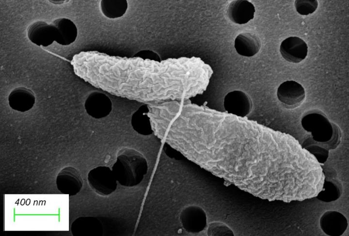 image: Scanning Electron Microscope (SEM) image of healthy, growing Vibrio parahaemolyticus.