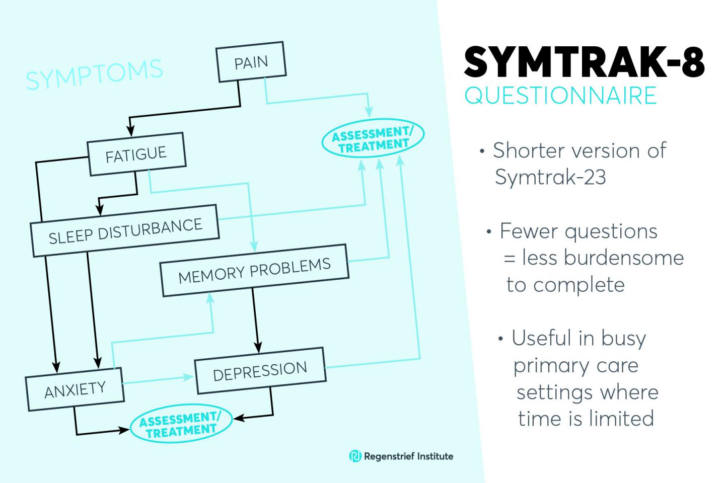 The SymTrak tool draws upon strengths of existing questionnaires such as the PHQ-9, GAD-7, and PHQ-15, as well as PROMIS® (Patient-Reported Outcomes Measurement Information System) and the Healthy Aging Brain Care-Monitor. It can be filled out by a patient or a caregiver.