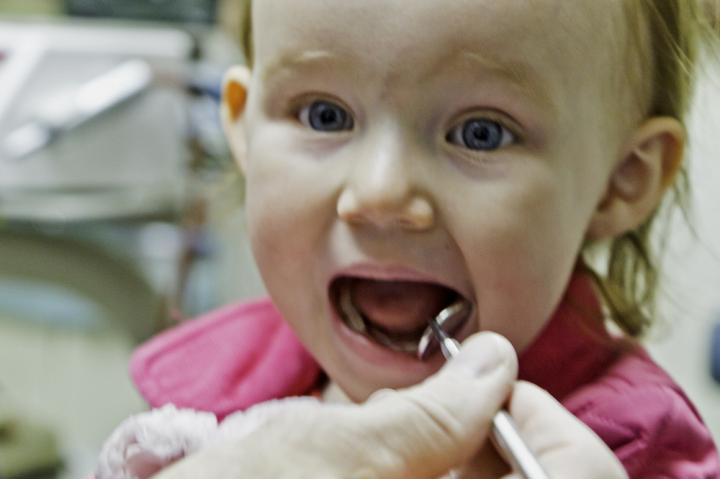 image: A little girl has her first visit to the dentist.