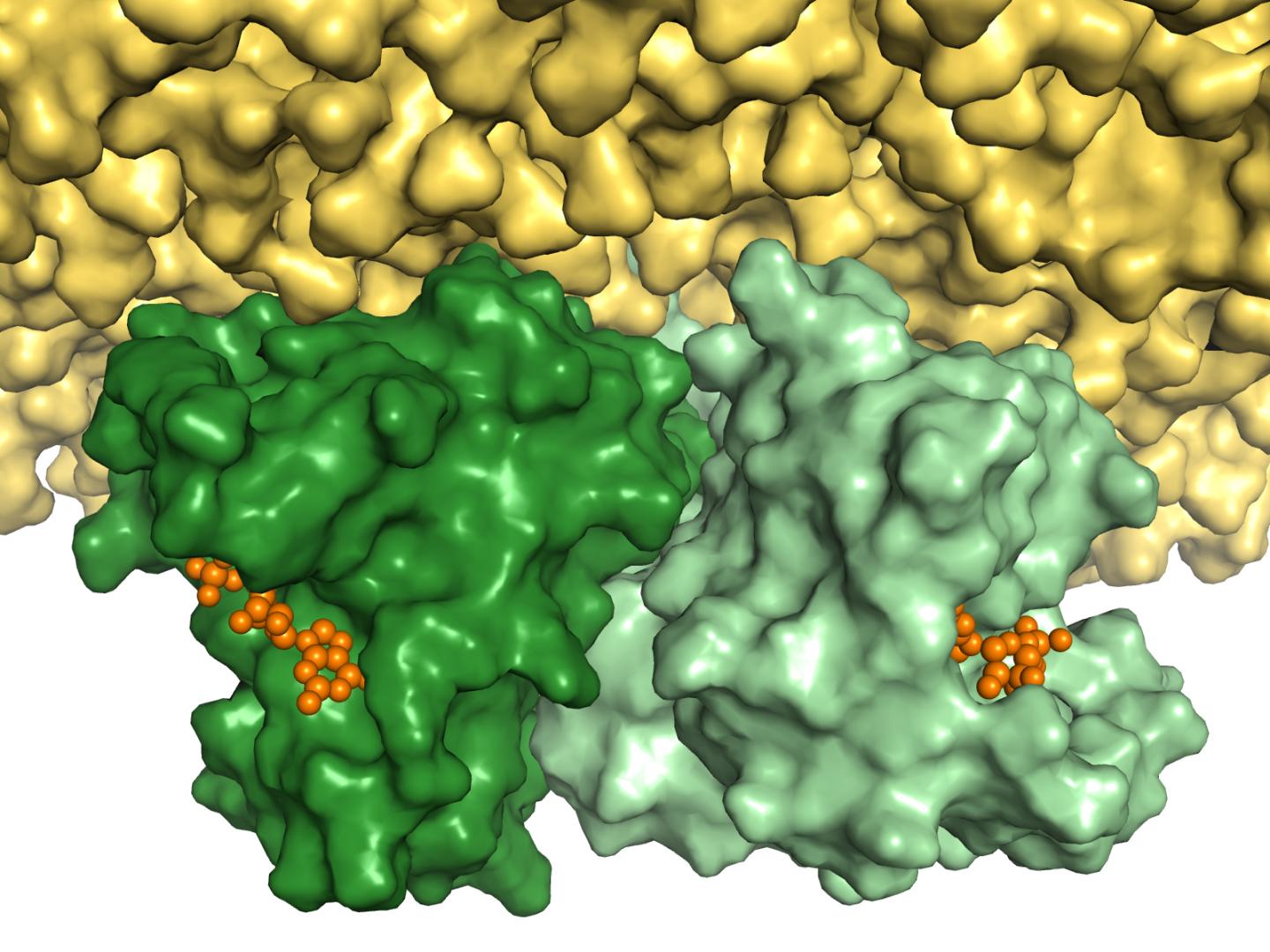image: The Ras Protein (green) forms a dimer at the cell membrane.
