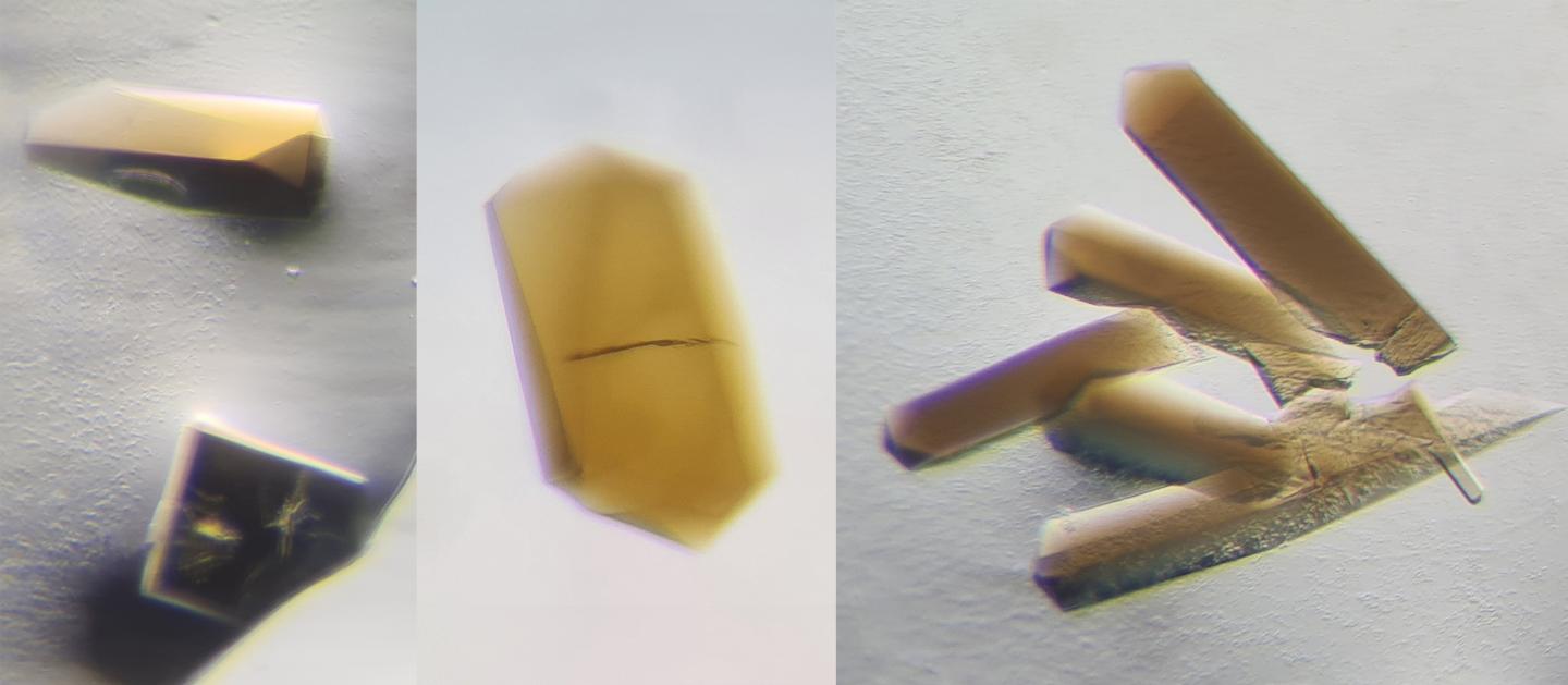 image: CODH/ACS crystals obtained without oxygen. The brown color is coming from the natural metals harboured by the proteins (depicted as orange and green balls in the Figure 2).
