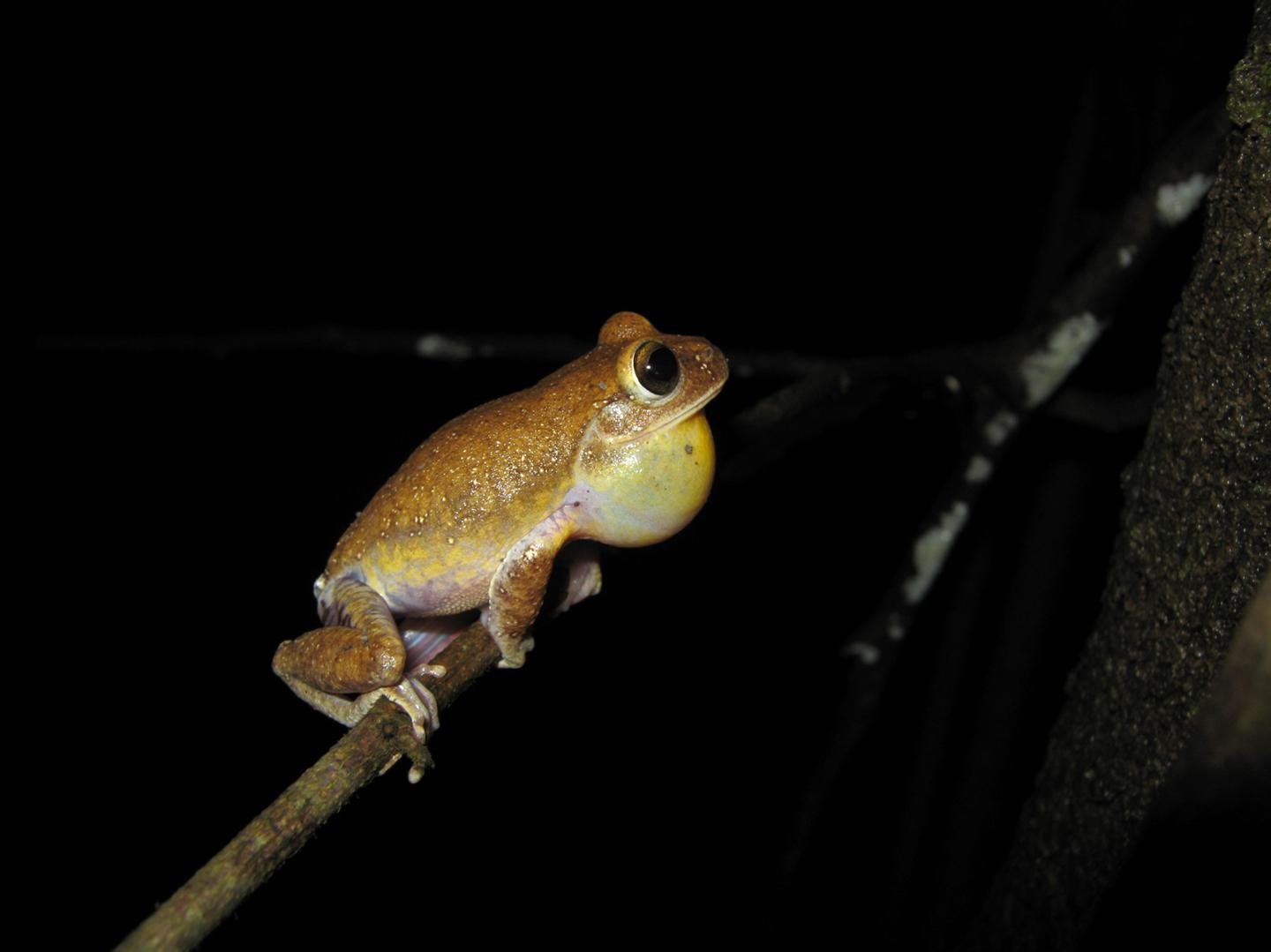 The savanna tree frog Bokermannohyla ibitiguara is about 4 cm long and is found only in gallery forest along streams in the Serra da Canastra mountain range in the state of Minas Gerais, Southeast Brazil. In this watery forest environment, it can grow, feed, mate, and lay eggs without needing to range very far throughout its life cycle, according to a study published in Diversity and Distributions.