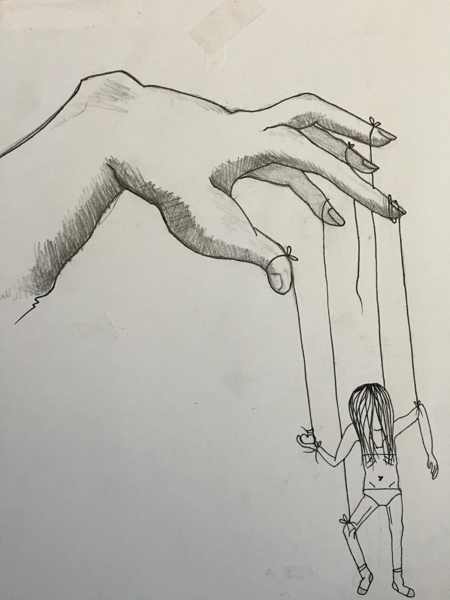 image: Sketch of a patient's perception of living with anorexia nervosa.