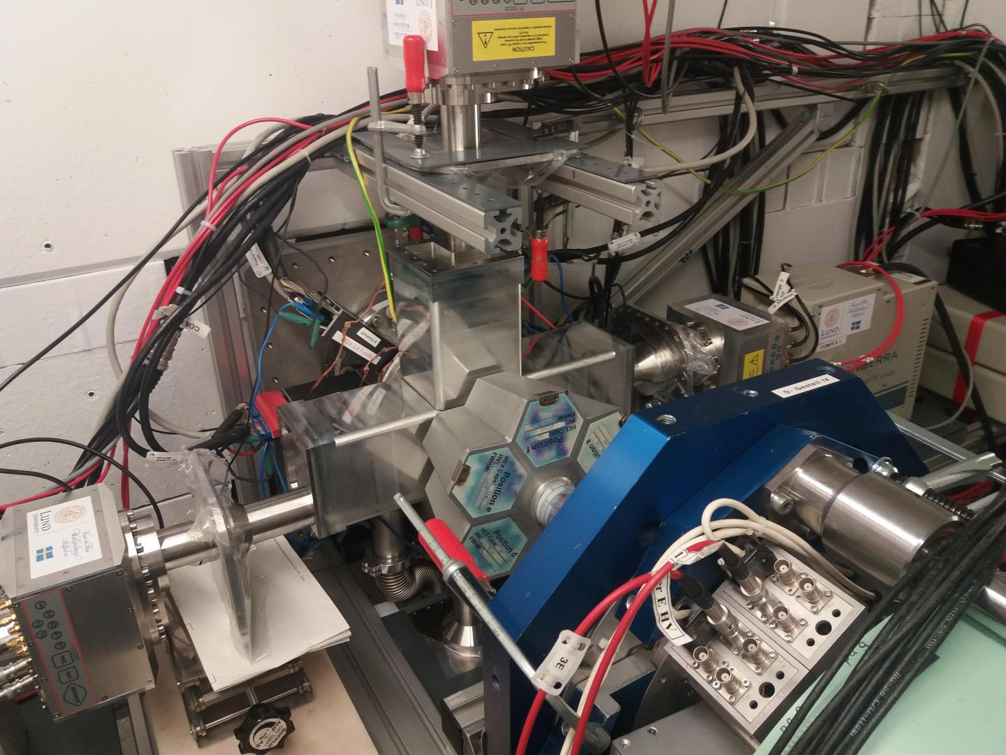 Nilsson's theories inspired the international collaboration led by the Lund group to investigate whether flerovium nuclei indeed exhibit the predicted magical properties. Their experiments, performed at the UNILAC accelerator at GSI in Darmstadt in the framework of the FAIR Phase 0 experimental program, lasted 18 days. Every second, four trillion calcium-48 nuclei with 20 protons were accelerated to ten percent of the speed of light. They irradiated a thin foil containing rare plutonium-244 with 94 protons to produce atomic nuclei of flerovium, which has 114 protons, by nuclear fusion. This so-called target was produced at the Department of Chemistry at JGU, using, plutonium provided, among others, by the Lawrence Livermore National Laboratory, USA. Strong magnets of the GSI recoil separator TASCA separated the flerovium nuclei from the intense calcium ion beam; subsequently they were registered in a detector setup specifically developed in Lund for this experiment.