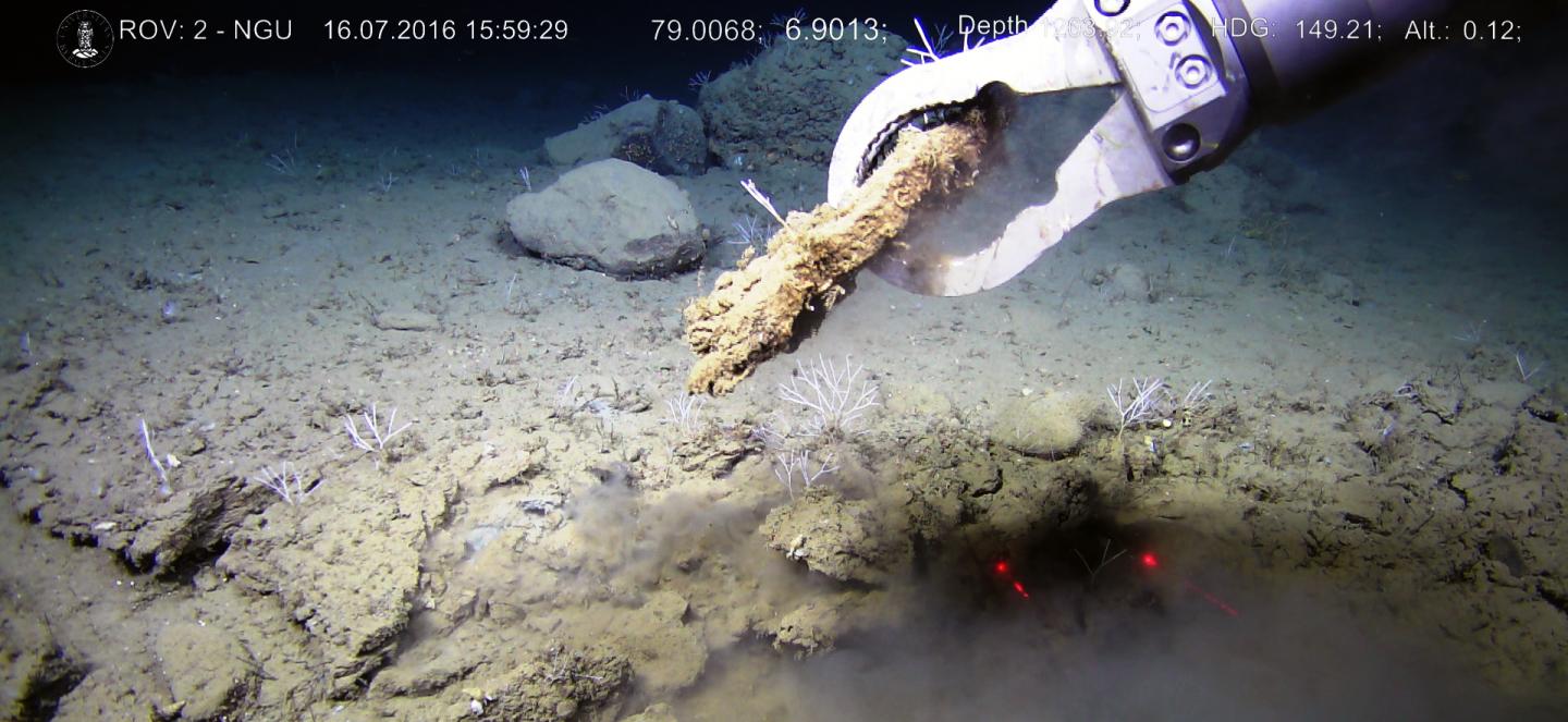During the first expedition aboard research vessel G.O. Sars, samples were collected from the seabed at the Vestnesa Ridge off western Svalbard at ~1200 meter water depth using the remotely operated vehicle (ROV) Æegir 6000.