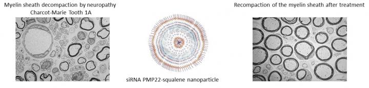 These scientists then showed, in mice models for this disease, that injecting these interfering RNAs completely and rapidly restored of mouse locomotor activity and strength. The siRNAs penetrate the peripheral nerves, strengthen the myelin sheath3 around those nerves, and normalize the nerve signal velocity. The effect of treatment lasts for three weeks for severe forms and more than ten weeks for milder forms of the disease.