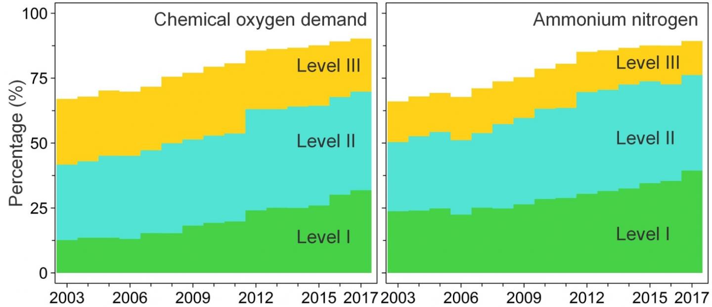 Improved inland surface water quality across the country is mainly attributable to reduced pollution emissions in the industrial, rural, and urban residential sectors.