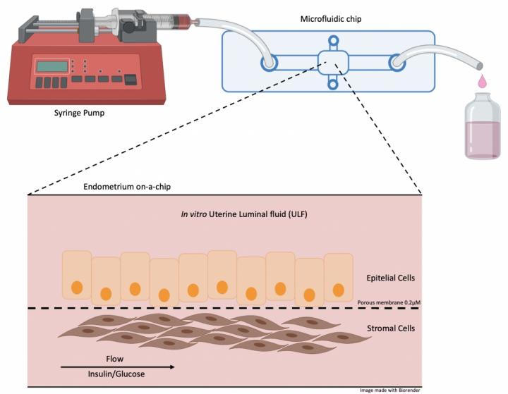 image: The device was used for the first time to culture two maternal endometrial cell types, revealing the effects of alterations in glucose and insulin levels in the uterine environment.