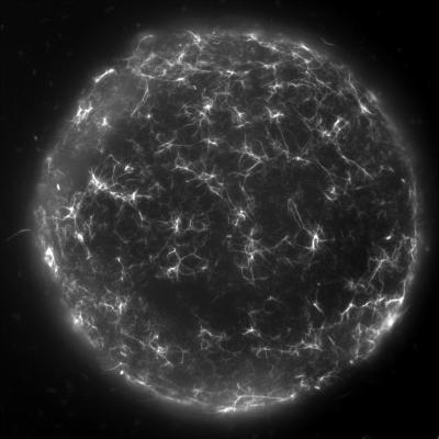 image: A network of DNA-uptake pili decorates the surface of a chitin particle colonized by Vibrio cholerae.