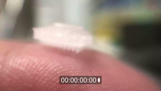 video: A cryomicroneedle patch placed on the hand to demonstrate the melting of the needles on the skin (without pressing them to penetrate into the skin).